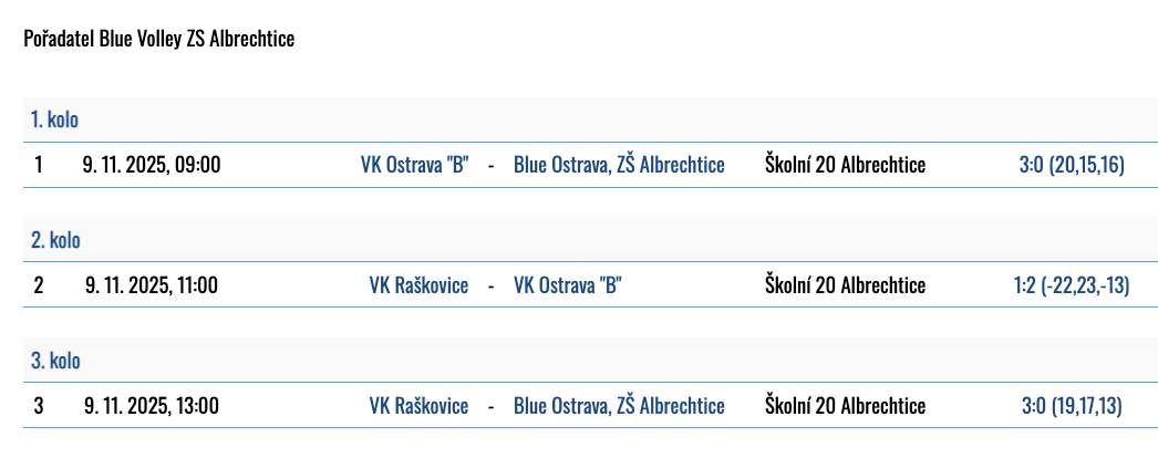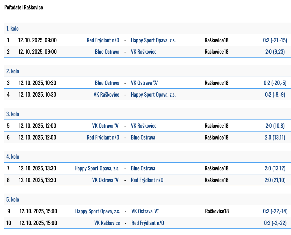 1. kolo: 9.11.2025 - 2. místo
