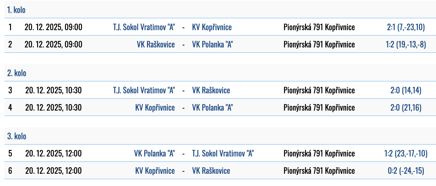 3. kolo: 20.12. 2025 - Kopřivnice (A)