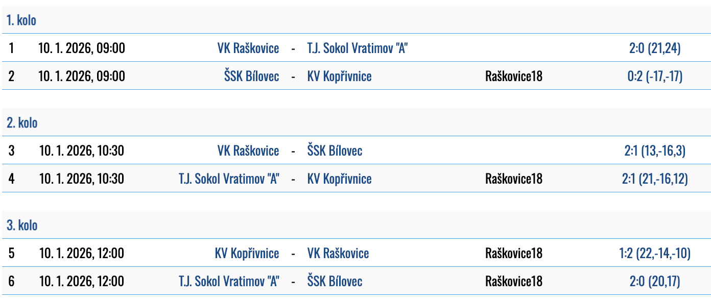 4. kolo: 20.12. 2025 - Raškovice (A)