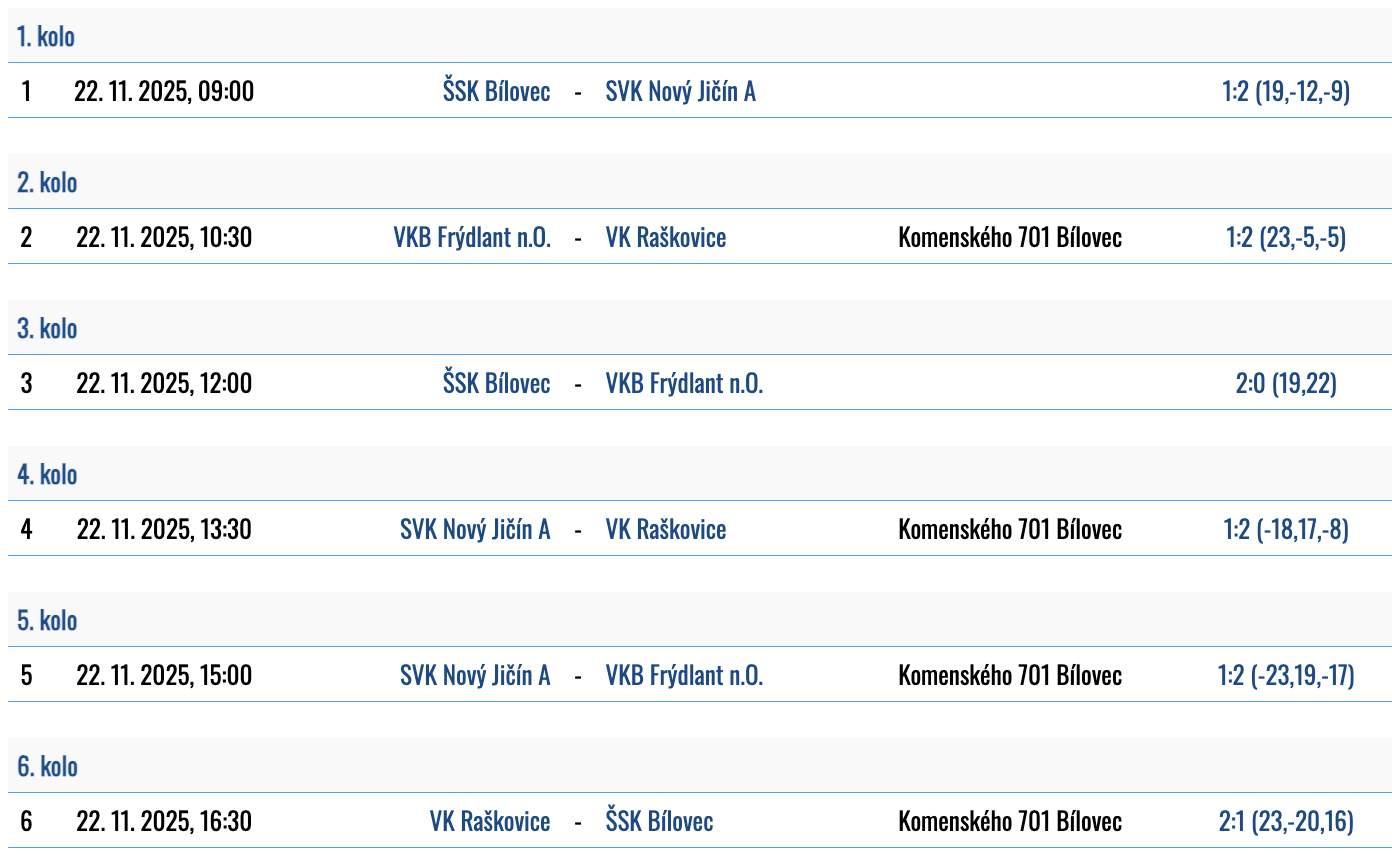 2. kolo: 22.11.2025 - Bílovec (B)