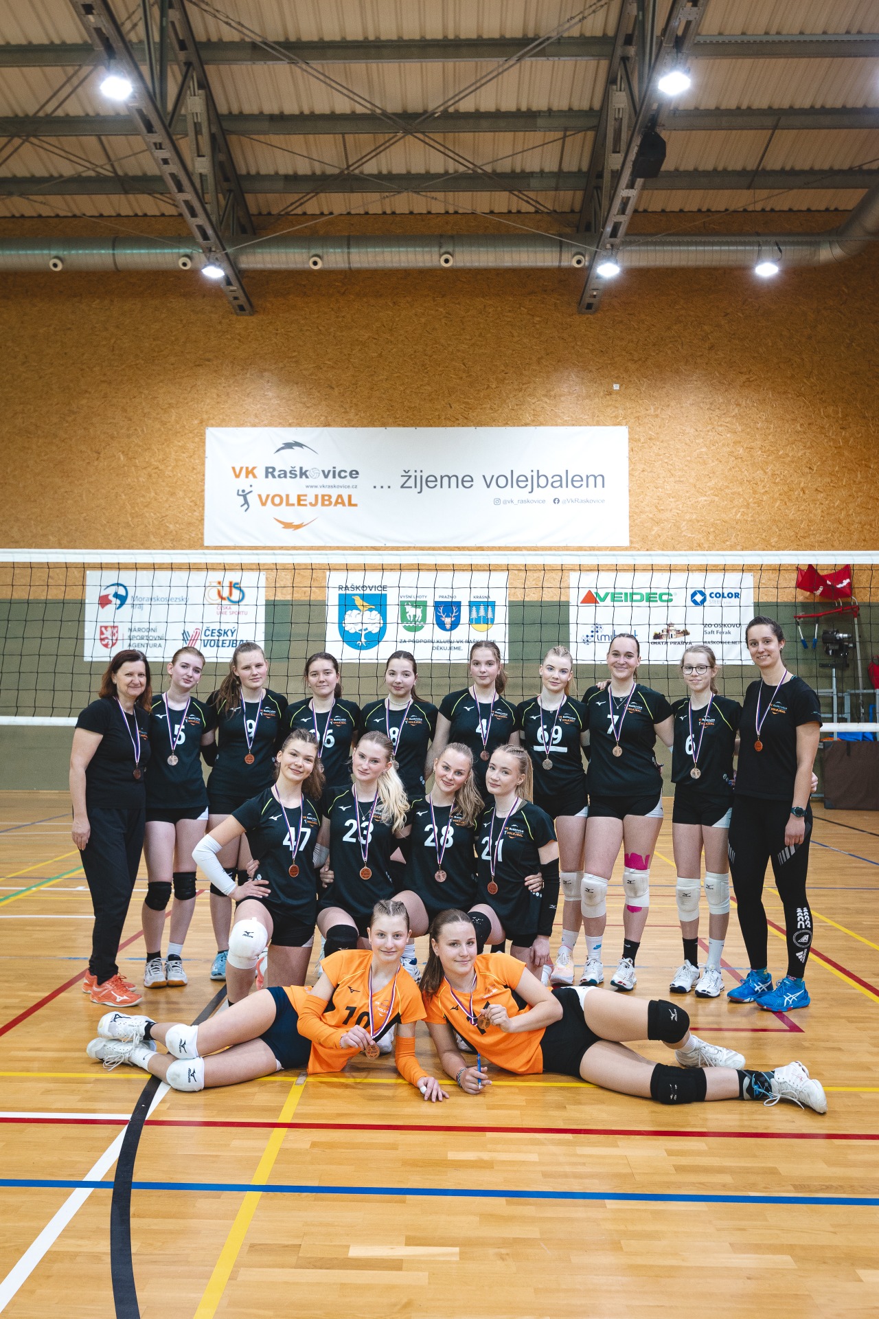 Zleva stojící: Vanessa Strašilová, Adéla Blahutová, Ema Bonková, Vendula Ožanová, Simona Blahutová, Vendula Andrlová, Anna Václavková, trenér: Jan Sonnek