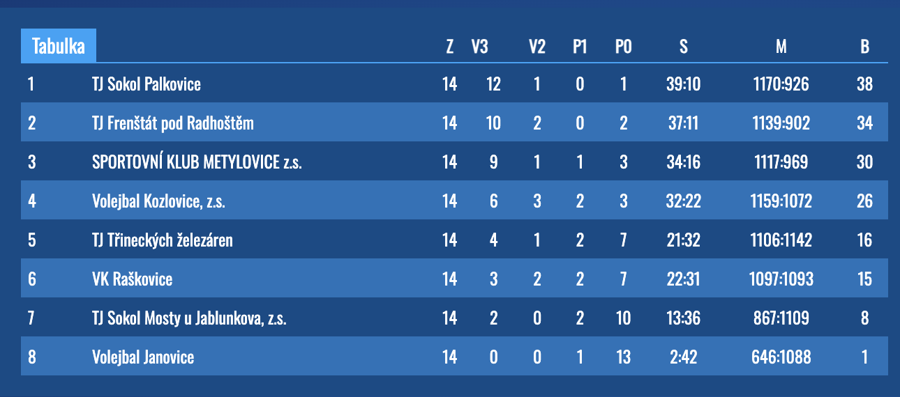 14 11. 11. 2024, 18:30 VK Raškovice - TJ Sokol Mosty u Jablunkova 3:0 (16,14,11)